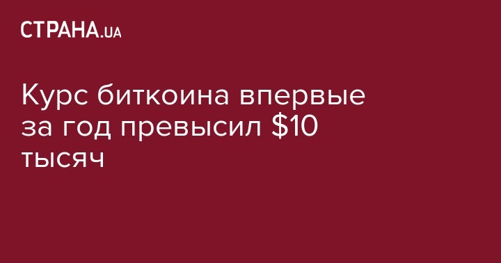 Впервые за более чем год биткоин преодолел отметку в 10 тысяч долларов. Об этом со ссылкой на данные бирж пишет "Новая газета".