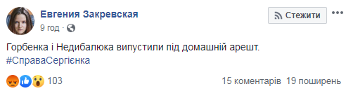 Об этом в Facebook сообщила адвокат Евгения Закревская.