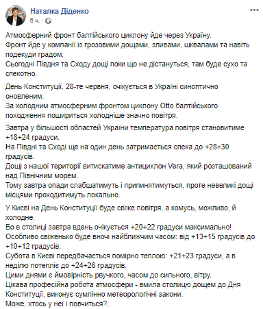 "День Конституции, 28-ое июня, ожидается в Украине синоптических обновленным.