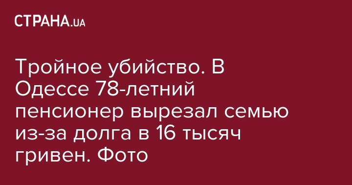 Тройное убийство. В Одессе 78-летний пенсионер вырезал семью из-за долга в 16 тысяч гривен. Фото