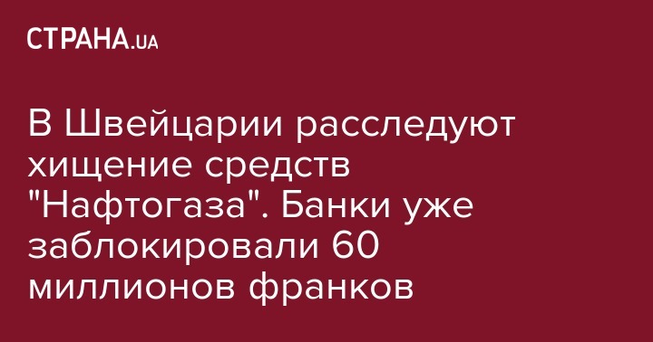 Согласно сообщению Федеральной прокуратуры в Берне, расследуется дело по подозрению в отмывании денег "в связи с вероятной растратой средств государственного украинского энергоконцерна "Нафтогаз". По данным швейцарских правоохранителей, на данный момент в рамках соответствующего уголовного производства на счетах в швейцарских банках заблокировано уже 60 миллионов франков.
