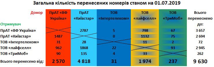 Отмечается, что за 2 мая - 2 июля 2019 года, по состоянию на 09:00 2 июля поступило 19846 заявок на перенос номеров, зарегистрированных в Централизованной базе УГЦР. Перенесено 9707 мобильных номера.
