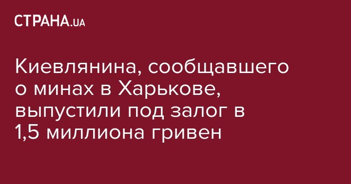 Киевлянина, сообщавшего о минах в Харькове, выпустили под залог в 1,5 миллиона гривен
