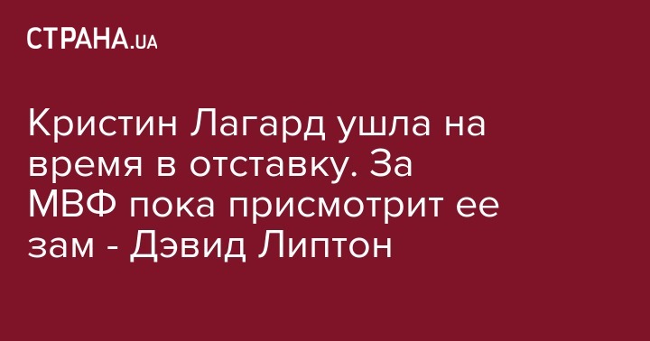 Обязанности директора-распорядителя МВФ будет исполнять Дэвид Липтон, первый заместитель Кристин Лагард.