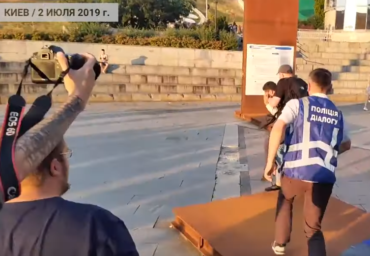 Журналист "Страны" Влад Бовтрук опознал человека, который избил его вчера, на акции "порохоботов" в центре Киева.