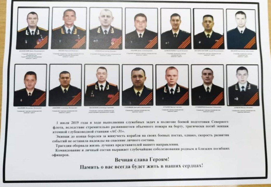 Как сообщалось, 2 июля в Минобороны РФ сообщили, что при пожаре на научно-исследовательском глубоководном аппарате погибли 14 моряков-подводников ВМФ России. ЧП произошло 1 июля в российских территориальных водах на научно-исследовательском глубоководном аппарате, предназначенном для изучения придонного пространства и дна Мирового океана в интересах Военно-Морского Флота России. По официальным данным пожар возник в ходе проведения биометрических измерений. 14 моряков-подводников погибли в результате отравления продуктами горения.