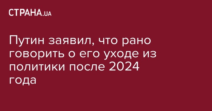 Президент России Владимир Путин заявил, что еще рано говорить о том, уйдет ли он из политики в 2024 году после окончания его четвертого президентского срока. Об этом он сказал в интервью итальянской газете Corriere della Sera, сообщает сайт Кремля.
