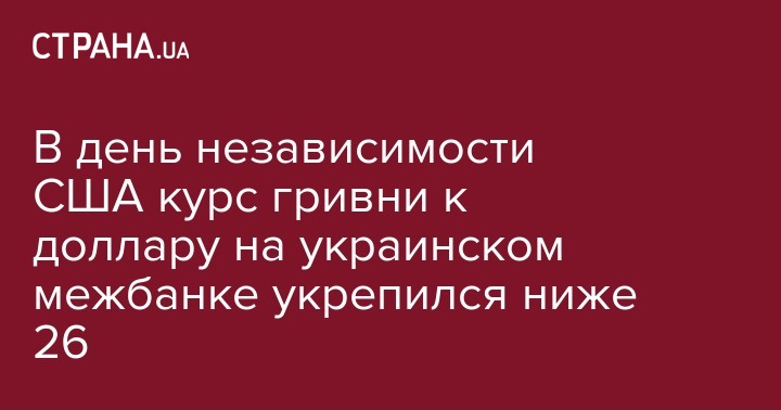 По данным НБУ, справочный курс гривни к доллару США на межбанковском валютном рынке 4 июля укрепился до 25,8987 грн/$1 с 26,0596 грн/$1.
