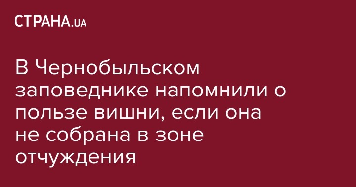 "Вишня имеет кисло-сладкий вкус. В плодах вишни содержатся органические кислоты (лимонная кислота, яблочная кислота, янтарная кислота, салициловая кислота), микроэлементы (медь, железо, цинк, йод, марганец, хром, фтор, молибден, бор, ванадий, кобальт, никель, рубидий), макроэлементы (калий, кальций, фосфор, магний), а также пектиновые вещества, витамины а, С, Е, В1, В2, РР, фолиевая кислота. Вот такая она - красная полезна ягодка. Полезная, но не в зоне отчуждения, откуда это фото", - предостерегают на странице Чернобыльского радиационно-экологического биосферного заповедника. Там же демонстрируется, какие красивые плоды уродились на вишневых деревьях в зоне отчуждения.