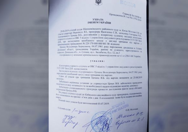 Украинские спецслужбы в конце июня провели секретную спецоперацию по аресту и вывозы с территории так называемой "ДНР" бывшего командира расчета ПВО в городе Снежное Владимира Цемаха. Он может быть причастен к трагедии рейса MH17 на Донбассе в 2014 году.