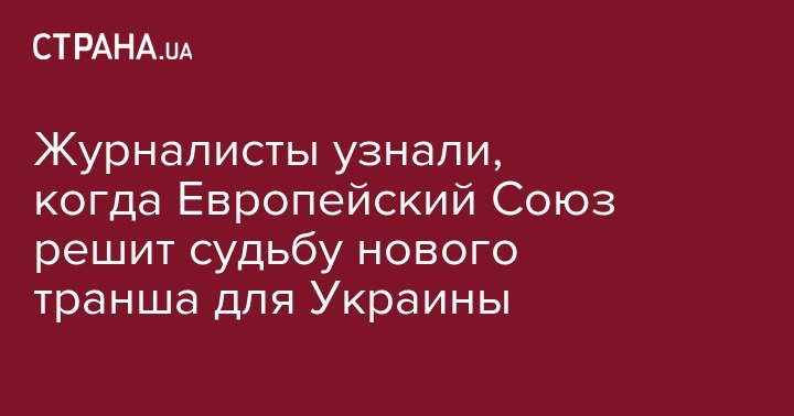"На данный момент нет конкретной даты, когда будет выплачен следующий транш макрофинансовой помощи - а это около 500 миллионов евро. Некоторые необходимые для этого действия потребуют также парламентского вмешательства, поэтому Верховной Раде предстоит проголосовать по ряду вопросов. Это трудно сделать до парламентских выборов, но мы ожидаем, что это будет быстро сделано после них", - сказал европейский дипломат.