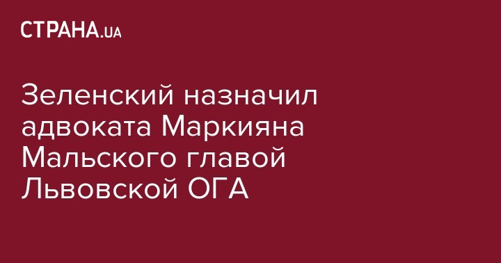 Президент Украины Владимир Зеленский назначил главой Львовской областной государственной администрации Маркияна Мальского, нового губернатора он представит 6 июля во Львове. Указ о назначении опубликован на официальном сайте главы государства.