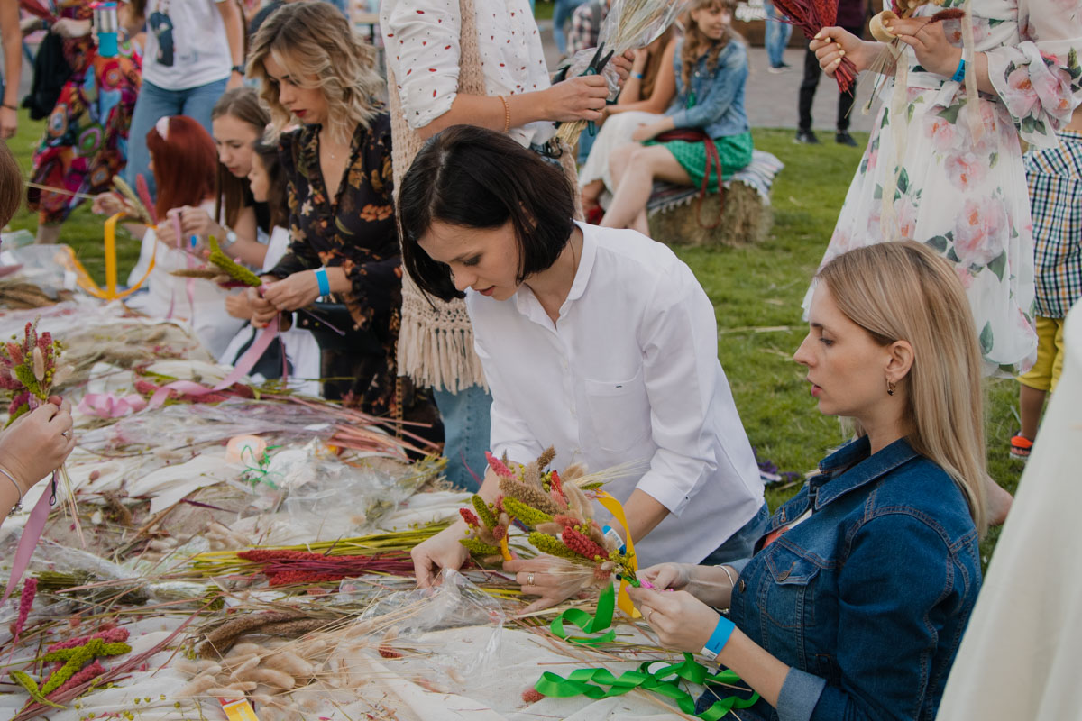 На празднике звучала загадочная музыка, присутствующих завлекали этно-танцами в традиционных купальских нарядах, гостей приглашали заплести косы, сплести венки, вкусно поесть и выпить. Девушки пришли на фестиваль в платьях с вышивкой, в веночках, с модным гримом и аксессуарами. Те, кто не успел так серьезно подойти к вопросу, могли приобрести все, что нужно, на локации.