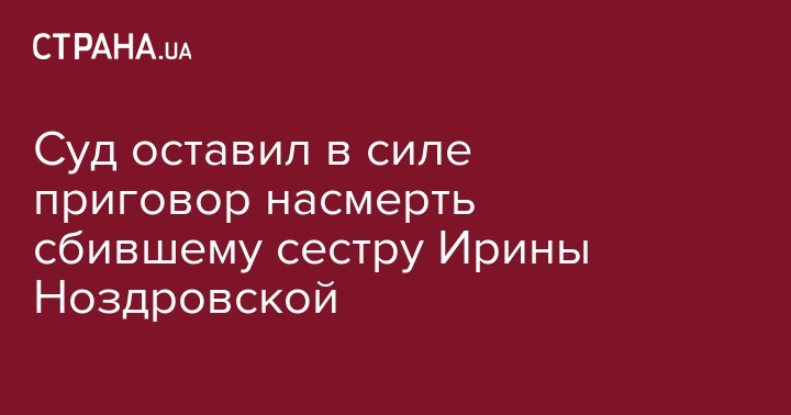 Суд оставил в силе приговор насмерть сбившему сестру Ирины Ноздровской