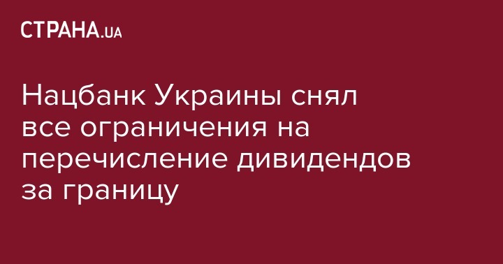 Напомним, что НБУ повышал лимит на вывод дивидендов с 7 до 12 миллионов евро.