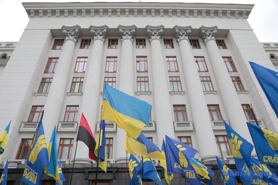 Активисты от националистических сил проводят в Киеве под Офисом президента акцию с требованием защитить информационное пространство Украины и не идти на переговоры с оккупантами. Об этом сообщает Укринформ.
