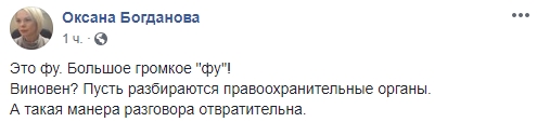 Журналист Оксана Богданова: "Это фу. Большое громкое "фу"! Виновен? Пусть разбираются правоохранительные органы. А такая манера разговора отвратительна".