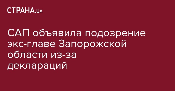 САП объявила подозрение экс-главе Запорожской области из-за деклараций