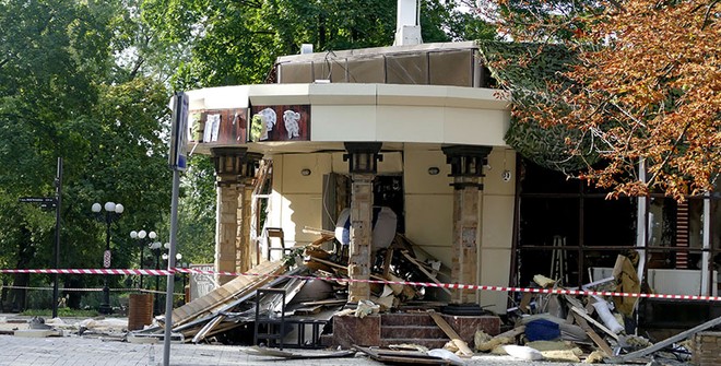 Кафе "Сепар" после взрыва, в результате которого 31 августа 2018 года погиб Захарченко