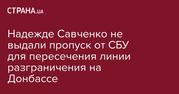 В СБУ не предоставили разрешение на пересечение "линии разграничения" на Донбассе народному депутату Украины Надежде Савченко.