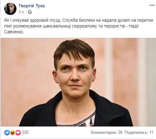 Как сообщала "Страна", Надежда Савченко собиралась лично вести предвыборную агитацию в неподконтрольной Горловке. Надежда Савченко также добавила, что уже получила в штабе ООС один из двух пропусков, необходимых для пересечения линии разграничения. Второй пропуск был нужен от СБУ.