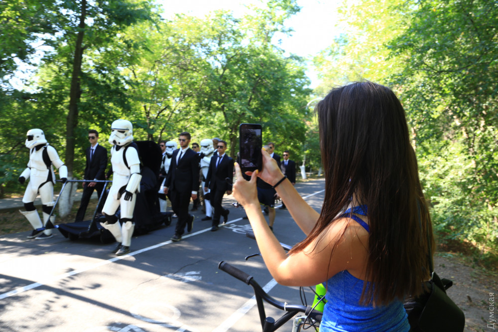 "Вейдера" сопровождали люди в костюмах Чубакки и галактических штурмовиков. Около часа ожидания ни к чему не привели - президент Украины не приехал.