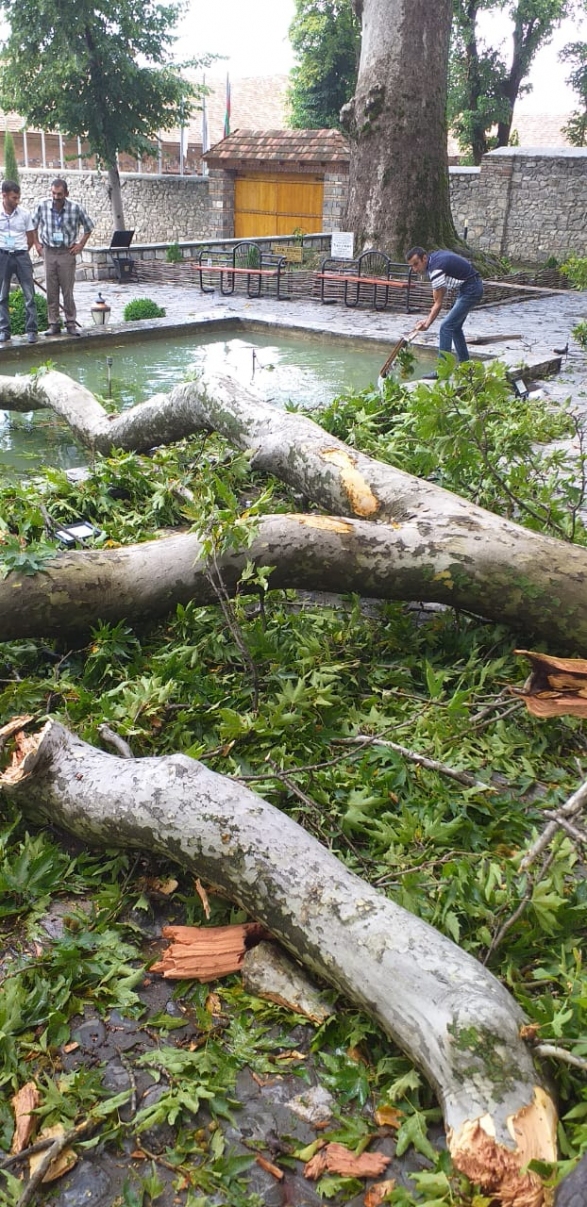 Происшествие случилось перед Дворцом шекинских ханов на северо-западе страны, куда традиционно съезжается много туристов. Отдел информации Госагентства по туризму заявляет, что ветка травмировала 19 человек.