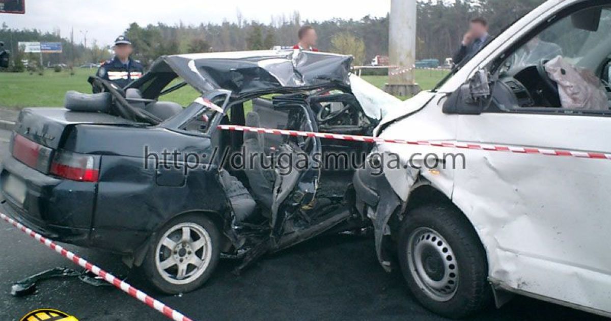Происшествие случилось на выезде с проспекта Николая Бажана на Бориспольское шоссе. Микроавтобус "Фольксваген" из кортежа столкнулся с автомобилем ВАЗ-2110. Водитель легковушки погиб, его пассажир пострадал.