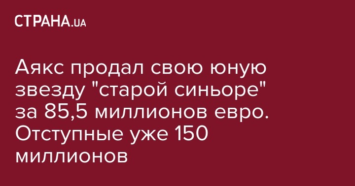Аякс продал свою юную звезду "старой синьоре" за 85,5 миллионов евро. Отступные уже 150 миллионов
