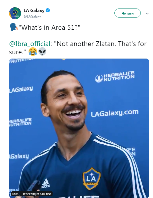 Популярная тема не обошла стороной и знаменитого игрока Лос Анджелес Гэлакси Златана Ибрагимовича. У шведа спросили, что же по его мнению, там может находиться. Неподражаемый Златан в своем стиле ответил, что в Зоне 51 точно нет второго Златана Ибрагимовича и значит затея со штурмом вообще лишена смысла.