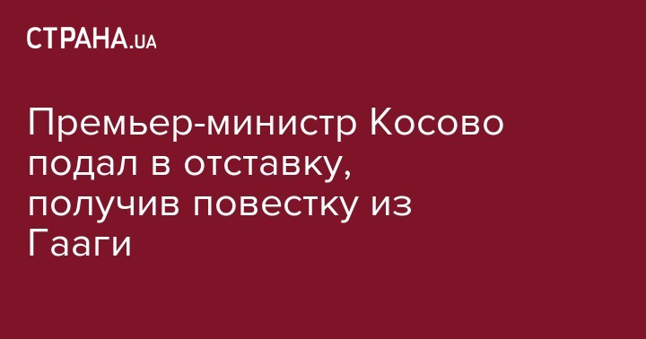 19 июля премьер-министр частично признанного государства Косово Рамуш Харадинай подал в отставку из-за вызова на допрос в качестве подозреваемого в Гаагу, где расследуют преступления в Косово 1998-2000 гг. Об этом сообщает сайт Balkan Insight.