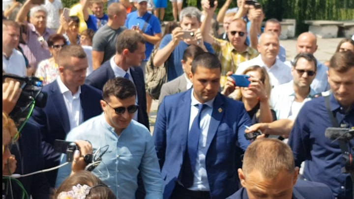 Президент Владимир Зеленский прибыл на избирательный участок в Киеве в черных очках.