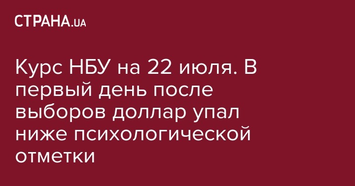 Курс НБУ на 22 июля. В первый день после выборов доллар упал ниже психологической отметки