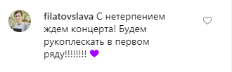 Другой пользователь написал: "С нетерпением ждем концерта. Будем рукоплескать в первом ряду".