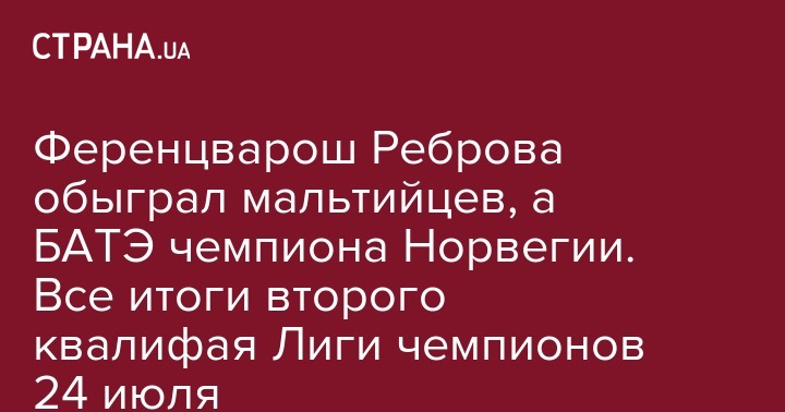 Ференцварош Реброва обыграл мальтийцев, а БАТЭ чемпиона Норвегии. Все итоги второго квалифая Лиги чемпионов 24 июля