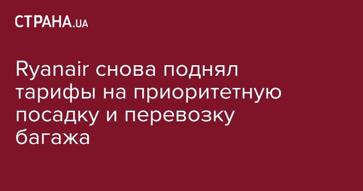 Ирландский лоукостер Ryanair поднял размер максимального сбора за услугу приоритетной посадки, а также перевозку малого багажа весом до 10 кг. Об этом пишет Avianews.