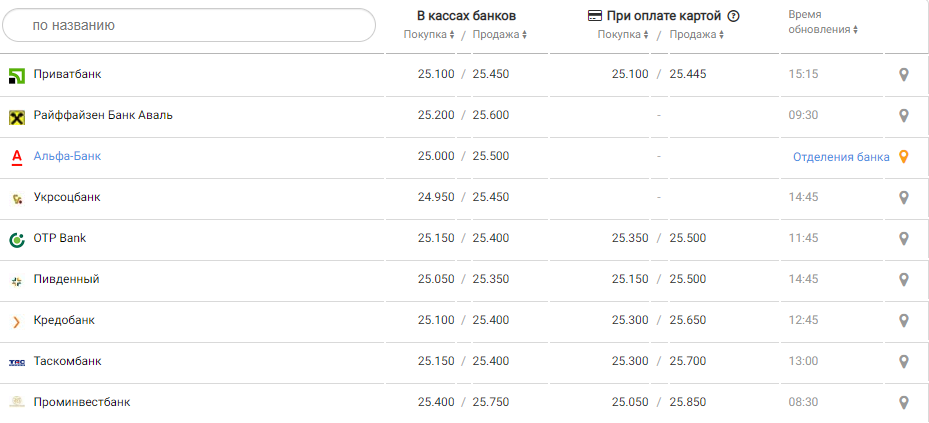 К 17:00 покупка была на уровне 24,95-25,4, а продажа 25,35-25,4 грн.