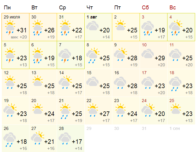 Погода в августе