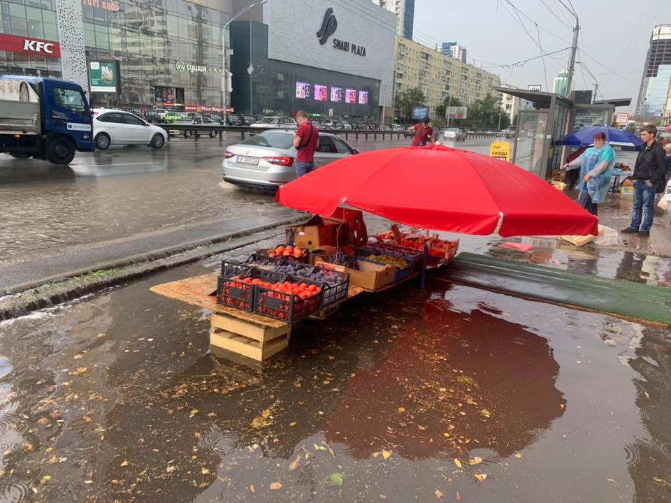 В Киеве после ливня, который прошел сегодня днем, затопило улицы.
