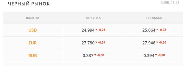 Курс валют на черном рынке на вечер 30 июля: