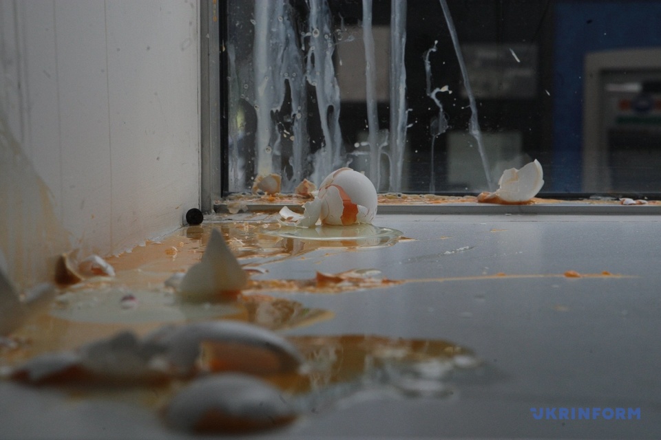 Напомним, во вторник, 30 июля, в Укринформе молодчики в футболках организации "Традиция и порядок" сорвали пресс-конференцию, посвященную возможным фальсификациям в округе №50 в Покровске в Донецкой области. В частности, они во время пресс-конференции выбили входную дверь в зал Укринформа и вбежали с криками "Сепаратист Аксенов!", "Ганьба", после чего облили водой и забросали яйцами кандидата в депутаты Андрея Аксенова.