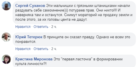 В комментариях одни подписчики пишут, что Потураев прав, поскольку новые депутаты уже начали раздувать самомнение о себе. Другие спрашивают, говорит ли это о том, что формируется культ личности Зеленского.