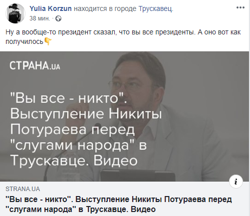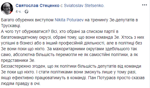 "Много возмущенных выступлением Nikita Poturaev на тренинге Зе-депутатов в Трускавце.
