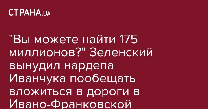 Пребывая с рабочей поездкой в Ивано-Франковской области, президент Украины Владимир Зеленский призвал нардепа Андрея Иванчука, который прошел в Раду IX созыва от округа №88, вложить в ремонт дорог 175 млн гривен.