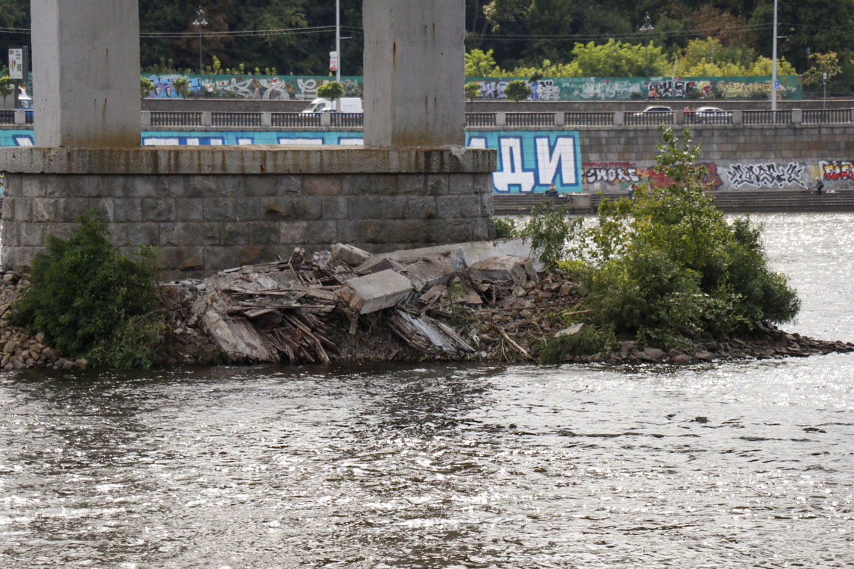 "Произошло падение железобетонных конструкций (противорычагов) на опоре № 3 (прогон 2-3, не судоходный). Сейчас приняты меры по обеспечению безопасности движения пешеходов по мосту и идет подготовка технического задания на разработку первоочередных действий по восстановлению конструкций моста и проведения глубокого специального обследования", - сообщила пресс-служба КГГА.
