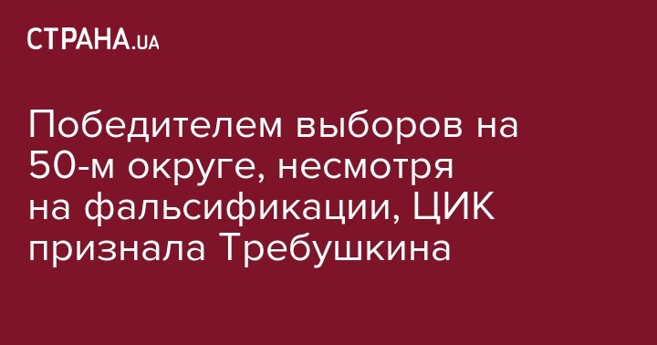 "На основании протокола окружной избирательной комиссии об итогах голосования в одномандатном избирательном округе № 50 Комиссия установила результаты внеочередных выборов народных депутатов Украины в ОВО № 50, признав избранным народным депутатом Украины Требушкина Р.В.", - говорится в сообщении, на официальном сайте ЦИК в понедельник вечером.