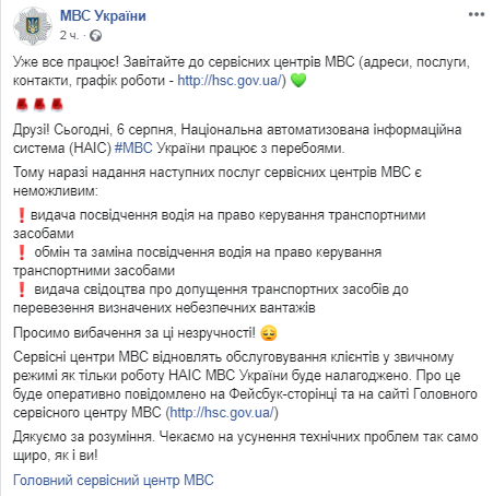 Однако по состоянию на 14:00 все неполадки были устранены. Сервисные центры МВД восстановили обслуживание клиентов в обычном режиме.