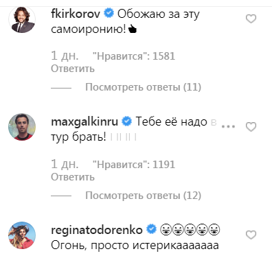 Под постом оставили комментарии несколько знаменитостей. Филипп Киркоров и Виталий Козловский похвалили коллегу за самоиронию.