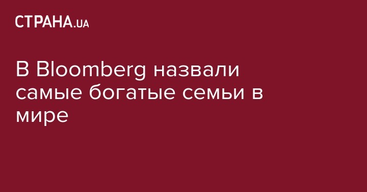 Bloomberg представил свой ежегодный рейтинг богатейших семей мира. Как и в прошлом году, его возглавила семья Уолтон, они контролируют сеть магазинов Walmart. Состояние семьи агентство оценивает в $190,5 млрд. Семейная холдинговая компания Walton Enterprises владеет 50% акций сети супермаркетов.