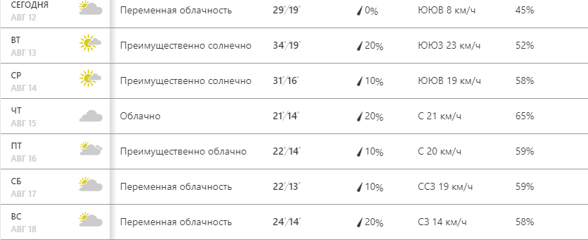 "Страна" собрала данные от шести синоптических источников, чтобы узнать, какой будет погода на этой неделе с 12 по 18 августа.
